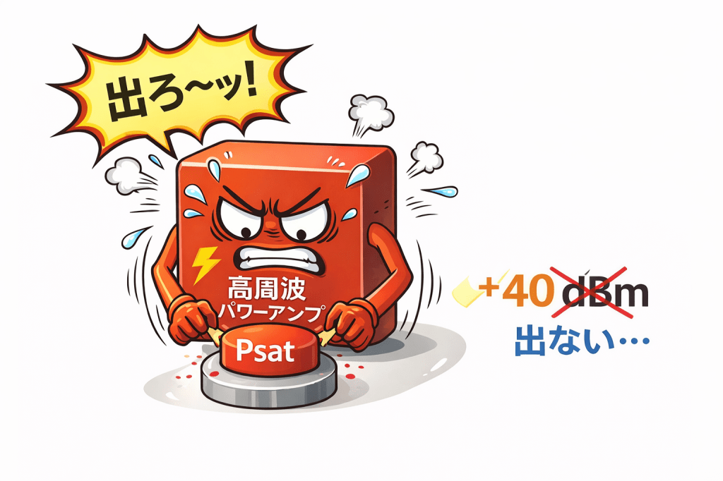 - 最終段が飽和して歪む 業界用語「押してもパワーが出ない」「サチ(Psat)る」